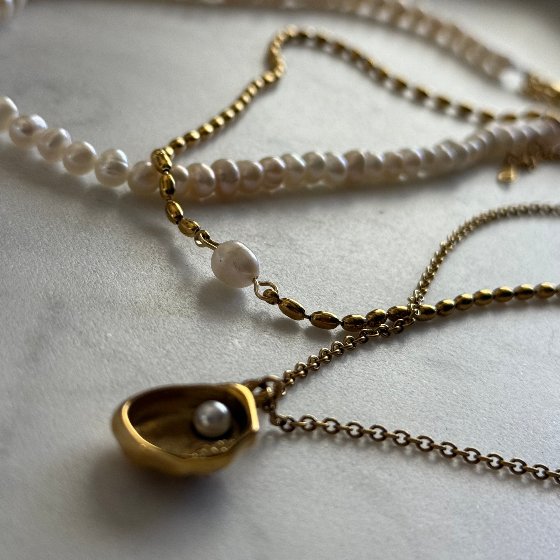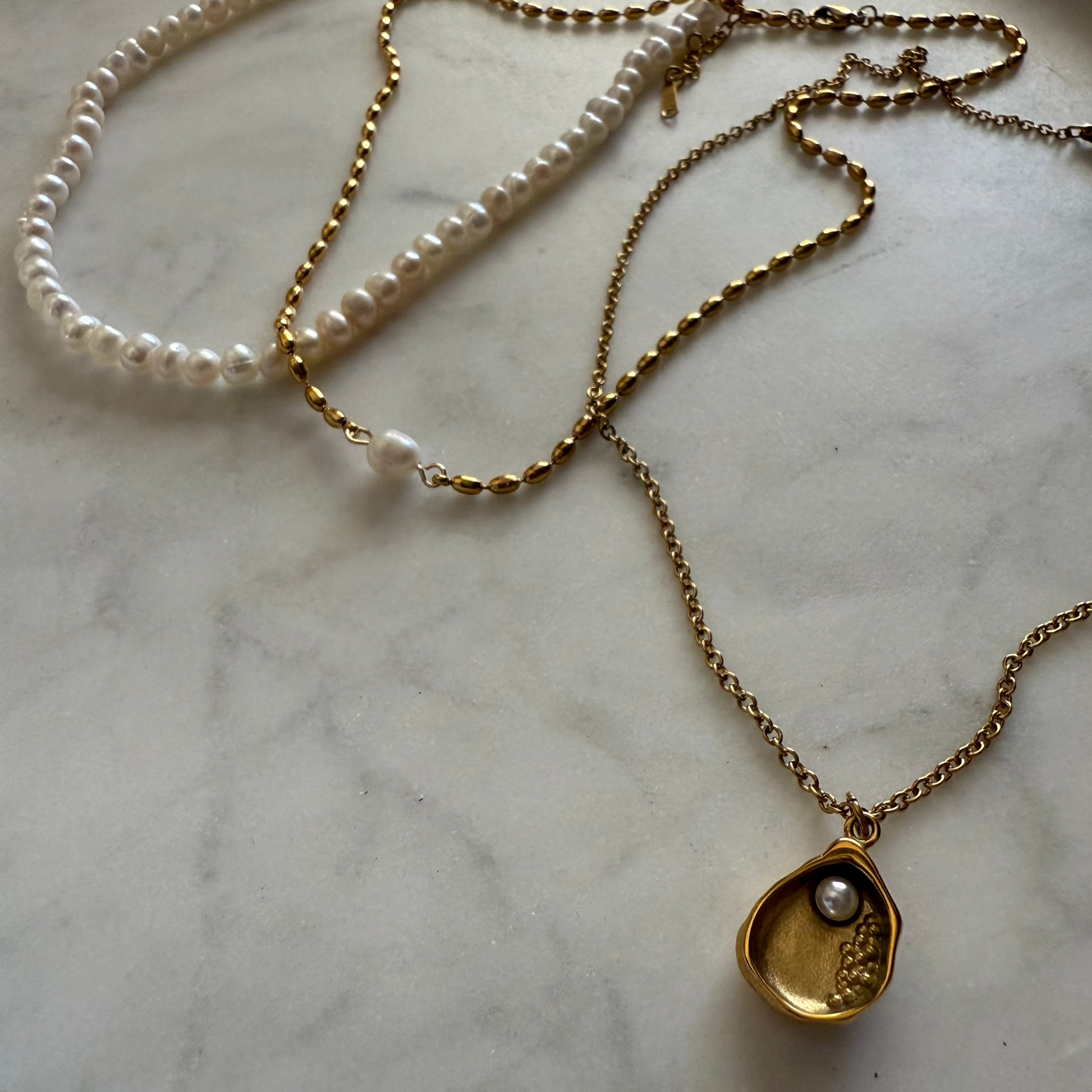 This 18-inch gold chain features a dainty shell charm with a sweet inlay pearl—just the right mix of playful and polished. It’s the kind of piece that instantly transports you to beach days, sunset strolls, and summer memories in the making.
