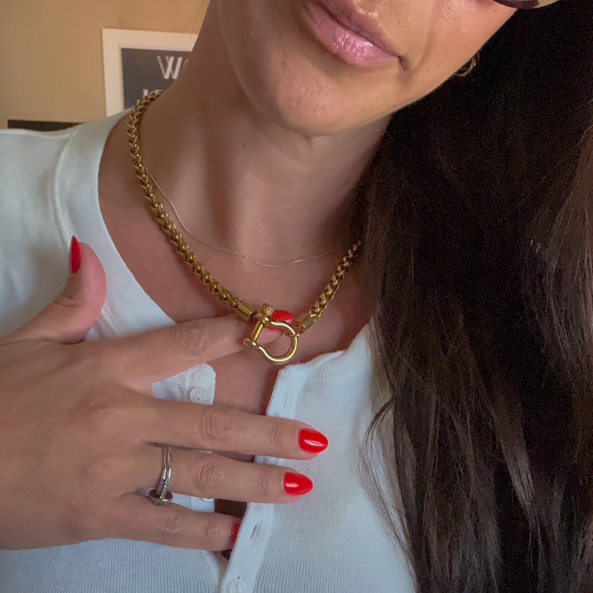 A bold, everyday statement. This chunky wheat chain necklace features a sleek horseshoe clasp that twists open for easy wear and removal — no fuss, just style.