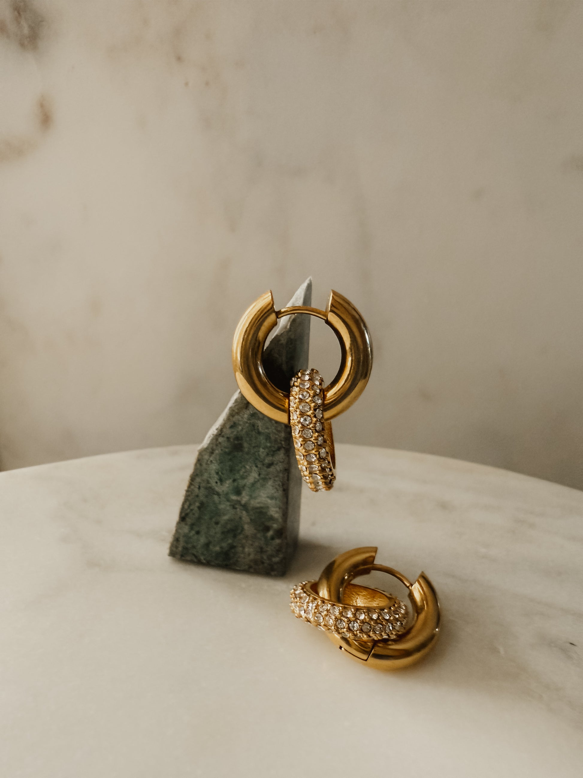 Two in one! Keep the sparkly hoop on special occasions or remove it and wear just the simple hoop as an everyday earring!
