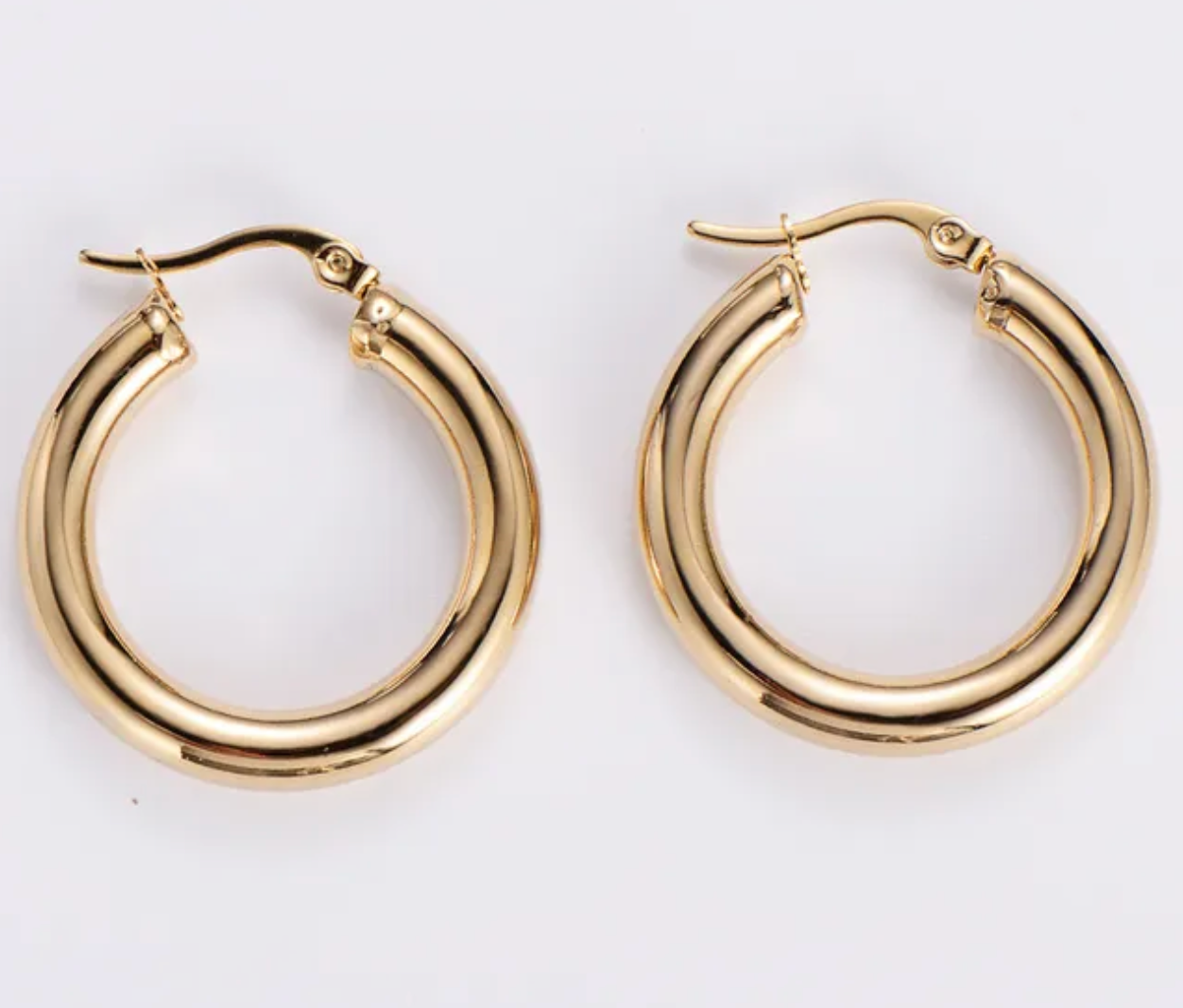 Introducing your new everyday hoops! These 20mm gold hoops are the perfect blend of subtle and statement, designed for effortless wear. Crafted with a sleek hinge closure, they’re easy to put on and lightweight for all-day comfort. Made from waterproof and hypoallergenic materials. These hoops are perfect for sensitive ears and can handle whatever your day throws at them—whether it’s a swim, workout, or just your daily routine. Stack them up or wear solo; these versatile earrings will quickly become your go-to accessory!