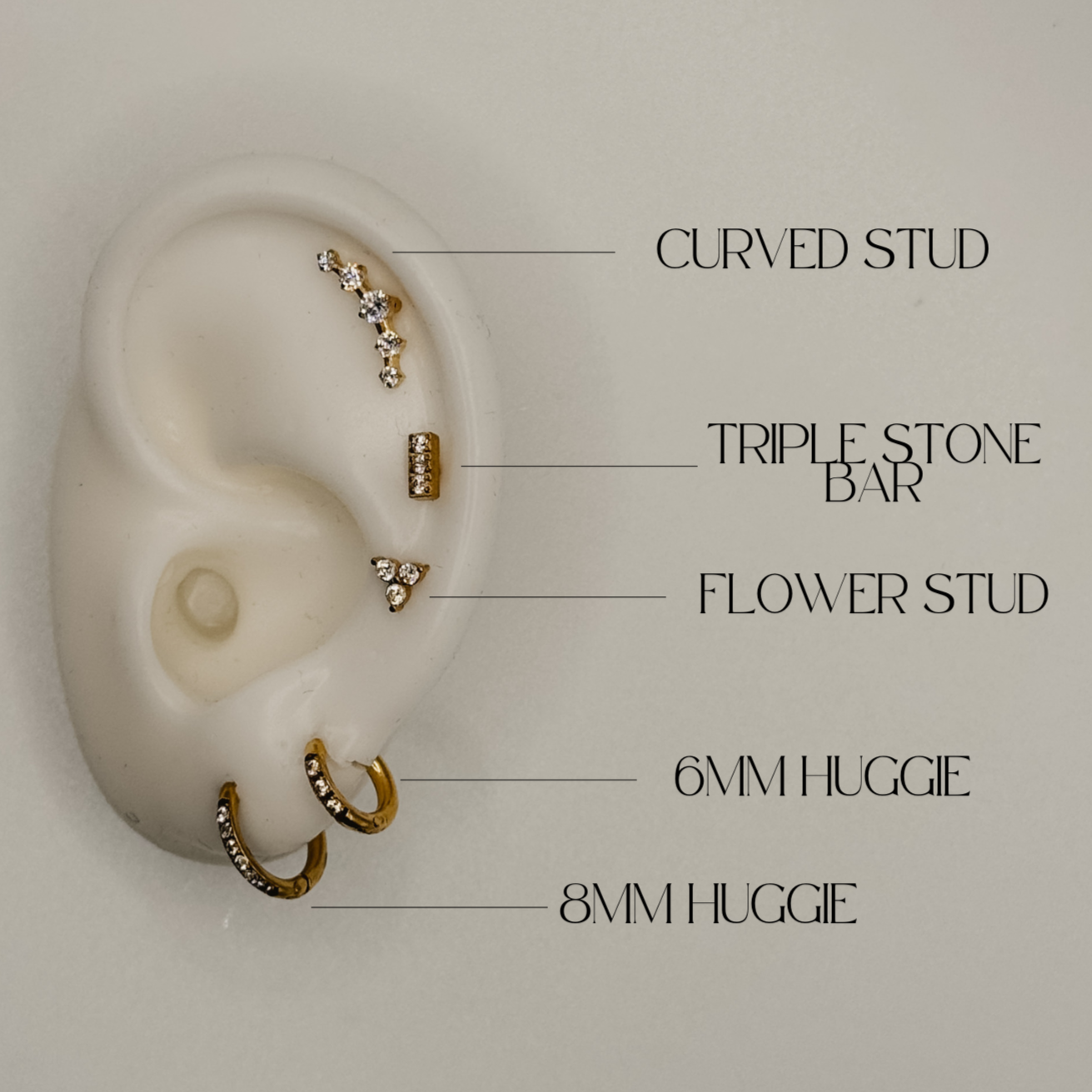 Available in 6mm and 8mm, these are our smallest huggies yet, designed for the girlies who love a minimal, effortless look while still keeping it chic. The tiny CZ stones add just the right amount of sparkle, making them perfect for stacking or wearing solo.