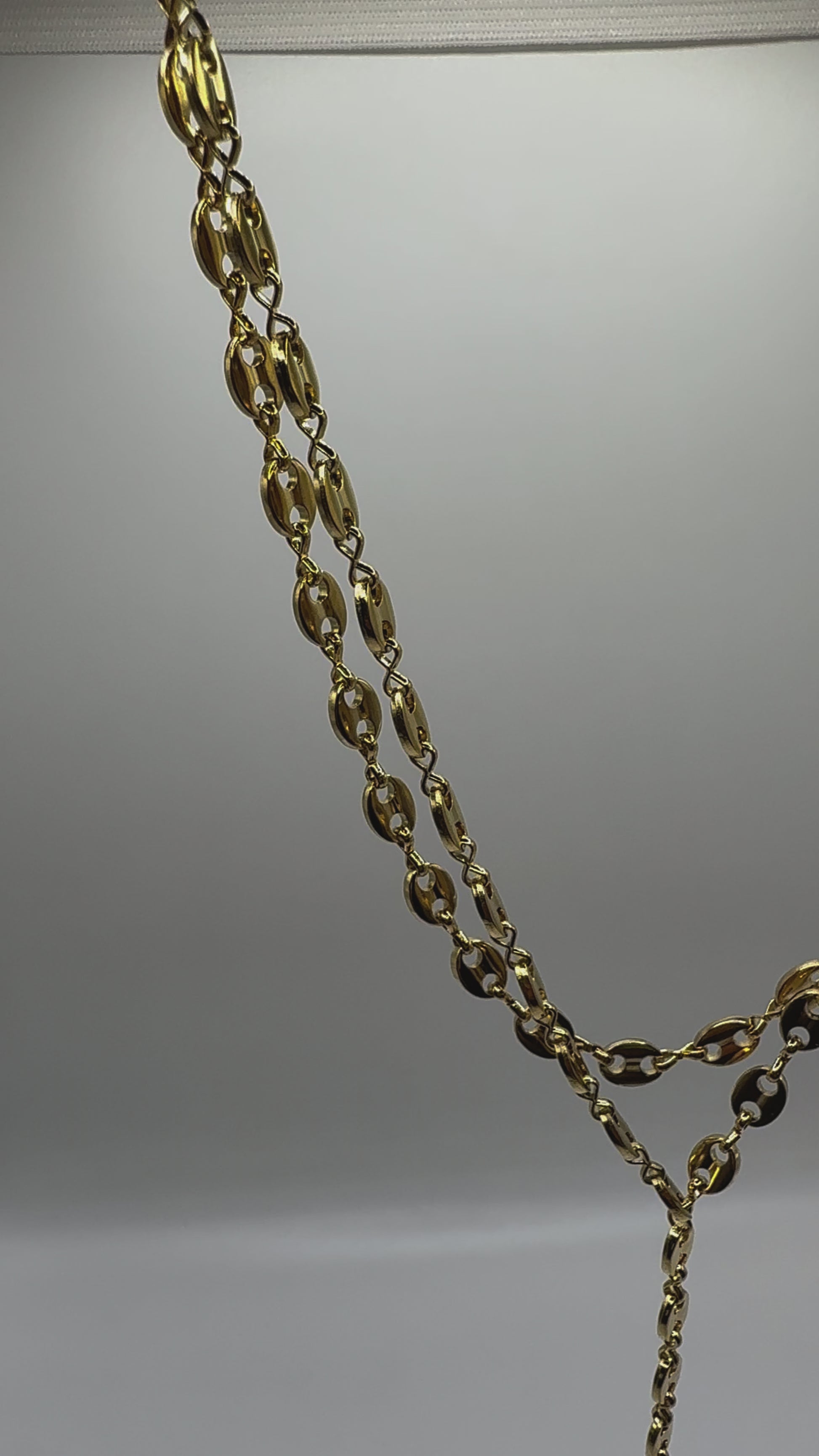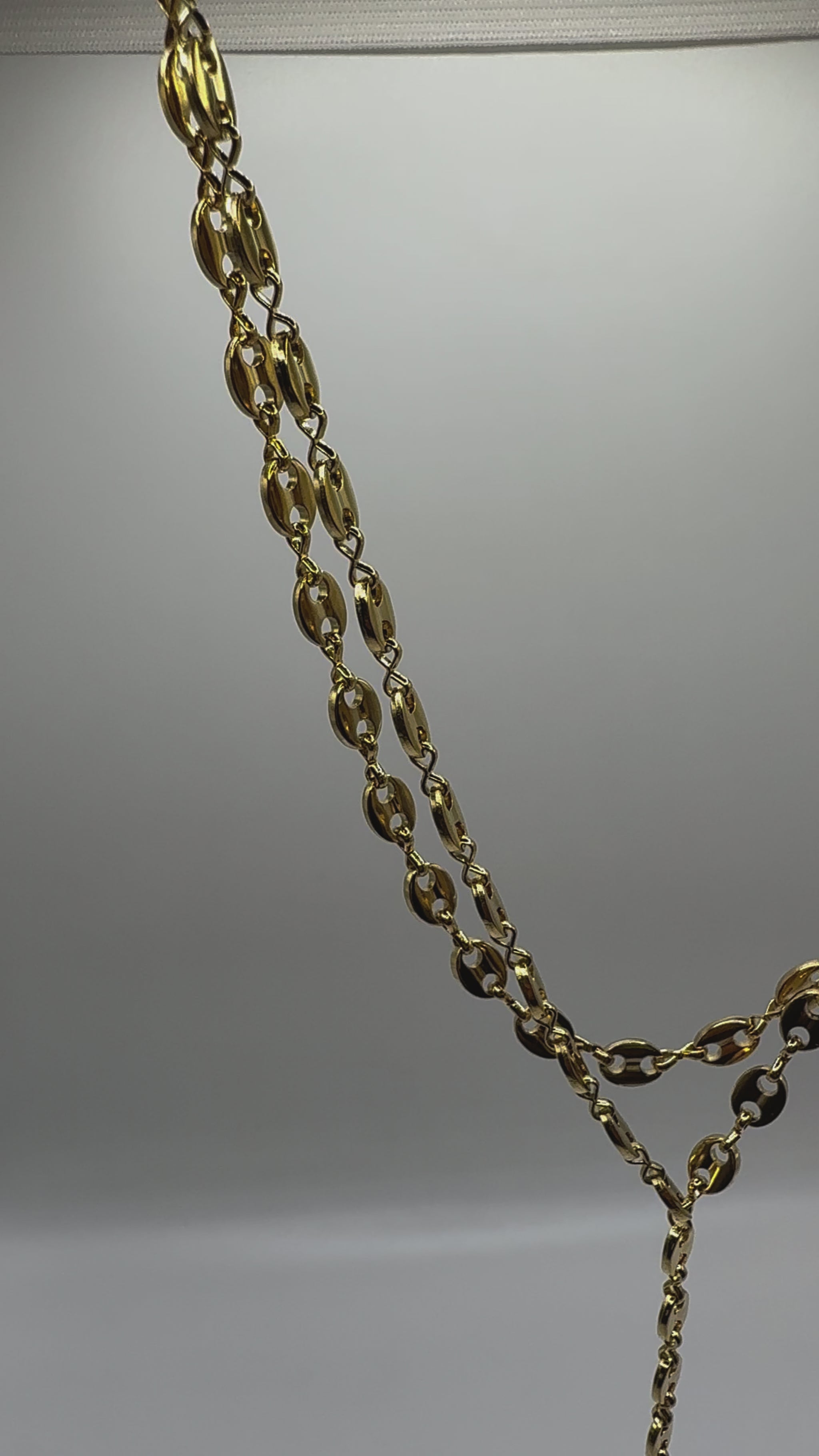 Designed to make a statement in the most effortless way, The Riviera Lariat Necklace is your go-to for any occasion that calls for a little extra shimmer. Crafted from high-quality, tarnish-resistant stainless steel, this piece features bold, interlocking links that drape seamlessly, creating a stunning Y-shape that elongates the neckline.